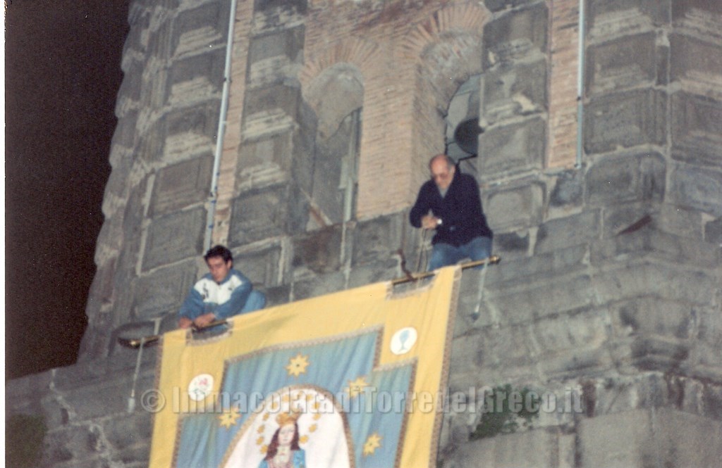 1990 Esposizione della bandiera dell'Immacolata.Nella foto Ascione Gennaro e Peppe Pullo.