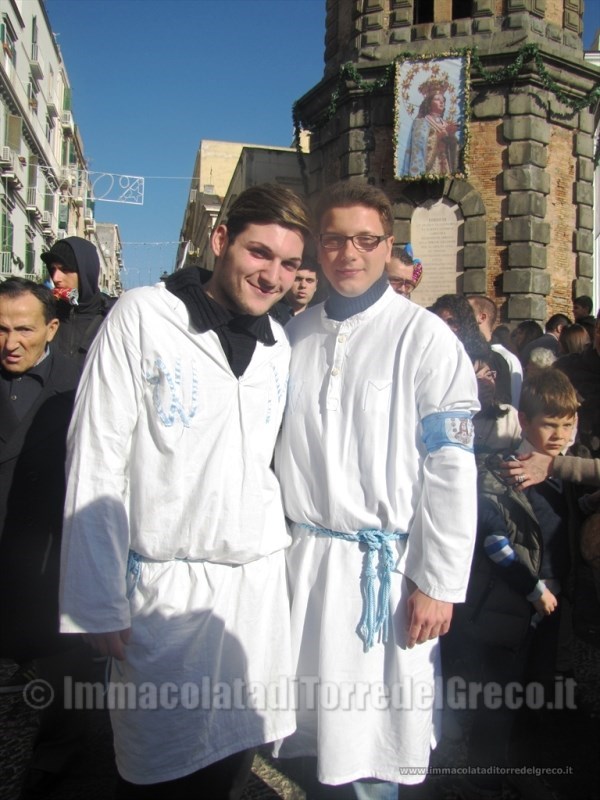 8-12-2001 Peppe Caputo e Antonio Mennella,portatori del Carro trionfale dell'Immacolata in via Comizi