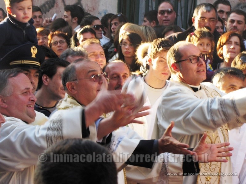 8-12-2011 Don Mario Pasqua,Don Giosue Lombardo e Don Aniello Gargiulo e il volo dei colombi durante la processione del Carro trionfale dell'Immacolata in via XX Settembre