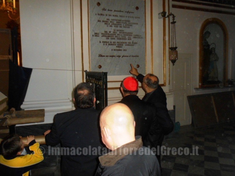 29/11/2012 Il Cardinale di Napoli,Crescenzio Sepe,visita la costruzione del Carro trionfale dell'Immacolata nella Basilica di Santa Croce.