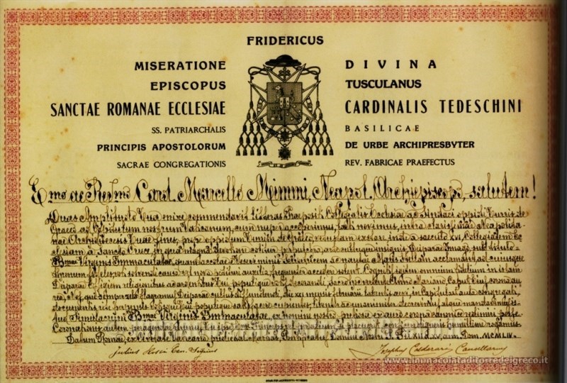 1954 Decreto dell'Incoronazione del Venerabile Capitolo del Vaticano