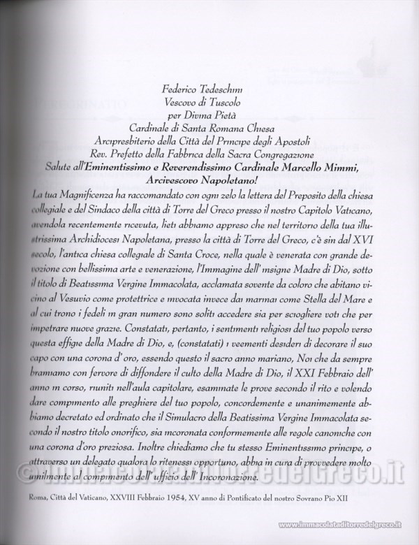 1954 Decreto dell'Incoronazione del Venerabile Capitolo del Vaticano